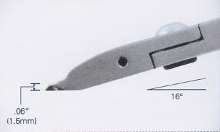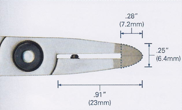 Strapazierfähiger, schmaler Spitzenschneider mit langen etwas breiteren Backen für eine lange Haltbarkeit. Mit sehr scharfen Schneiden |
