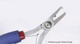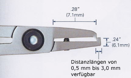 Distanzschneider mit 90 Grad abgewinkelten Schneiden für das Ablängen der Drahtenden auf der Rückseite von elektronischen Platinen. Die Schneider gibt es mit vordefinierten Distanzlängen von 0,5mm bis zu 3,00mm. Eine Anschlagschraube verhindert die Beschädigung der Schneiden.
