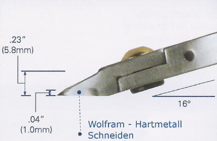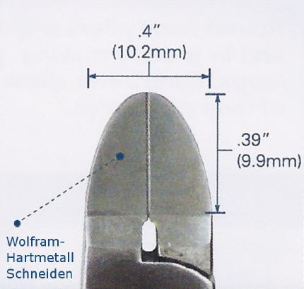 Diese Schneider haben mit Silberhartlot eingelötete Schneiden aus Wolframkarbid. Sie zeichnen sich durch Ihre sehr hohe Härte von 79 bis 81 HRC aus. Der Kopf und die Schneiden sind Diamantgeschliffen und erhalten so Ihre typische Schärfe. Die ovale Kopfform elaubt das Schneiden von dünnen Stahldrähten bis zu einer Dicke von 0,65 mm.