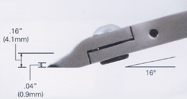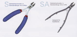 Diese Schneider aus Edelstahl haben einen kleinen ovalen Kopf und eignen sich daher besonders für feine Arbeiten. Die induktiv gehärteten Schneiden haben eine Härte von 57 - 58 HRC. Die Schneideleistung beträgt bei Semi-Flush 0,2 mm - 1,25 mm. Bei Flush Schneiden 0,1 mm - 1,25 mm.
